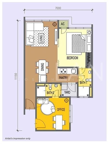 Layout 2 rooms, 2 bathrooms, 1 car park.
