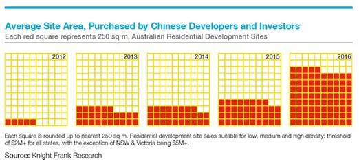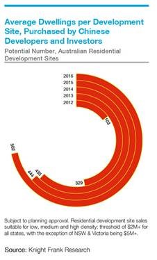• In 2016, Australian development sites purchased by Chinese developers and investors averaged a potential 502 dwellings per development site – 13% up from one year ago