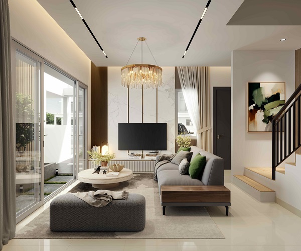In RT2, the living area features a sliding door that opens up to a side terrace. Homebuyers have the option to enhance the view by adding landscaping to the pocket terrace, visually extending the living space and connecting residents to the verdant surroundings.